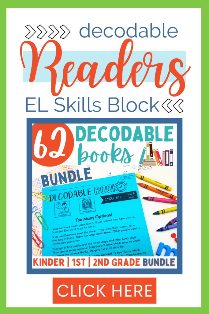 If you are finding that you are using too much paper printing the decodables from EL’s website, I have a solution for you. I re-formatted EL’s decodable books to fit onto one page to help save paper. I have also included some practice words with the phonics skill for each cycle at the beginning of the decodable. These are sold separately by grade level, plus there are some k-2 bundling options. Check them out below: