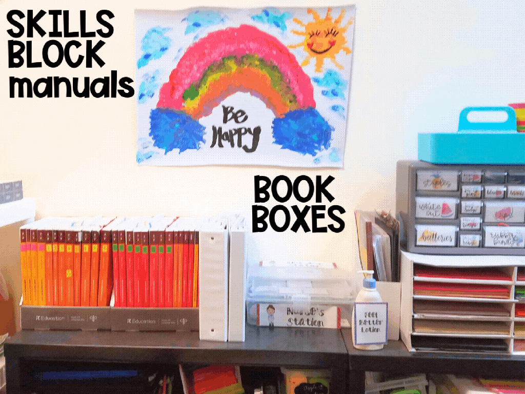 If your school decides to purchase the consumable books after all, the easiest way I’ve found to store the books is in clear sterilite storage boxes. The consumables fit perfectly in the sterilite storage boxes on its side (spine up). To make it easy to find the books, place the first book of each cycle vertically.