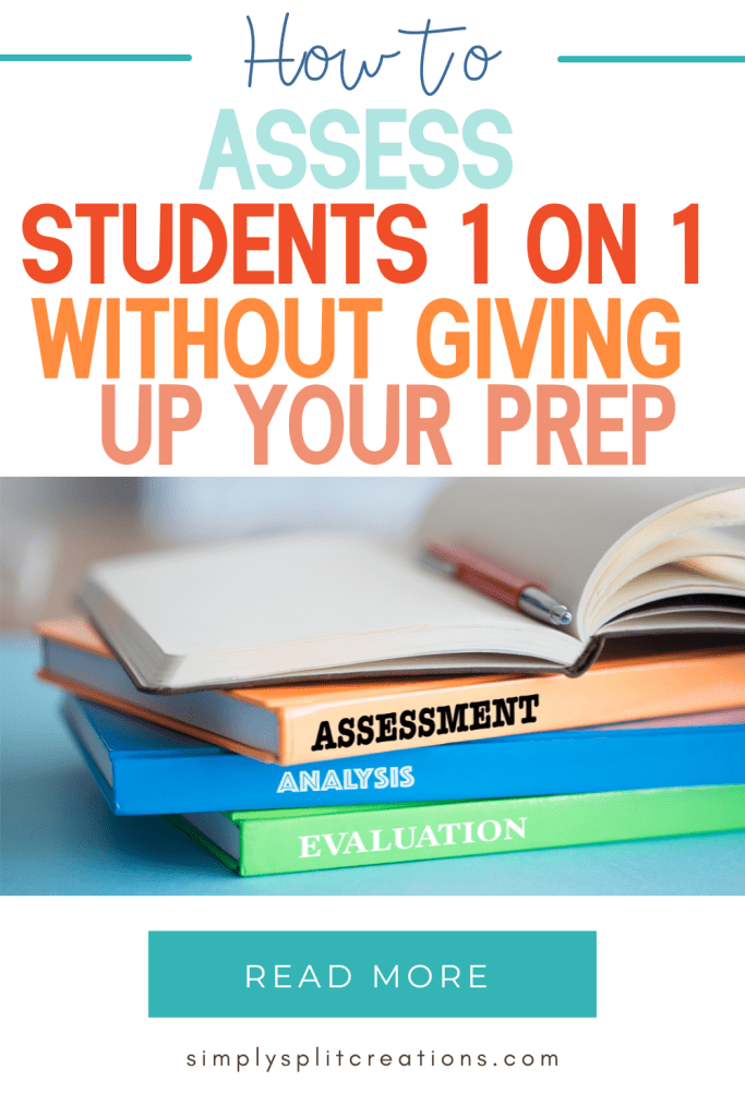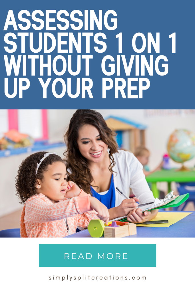 - PREP TIME – Using your prep time is a last resort but sometimes necessary. Don’t sacrifice your whole prep time, but take 5 minutes of your prep time to assess 1-2 students while the class is at specials. This will add up over time and before you know it, you can make it through your whole class of students.